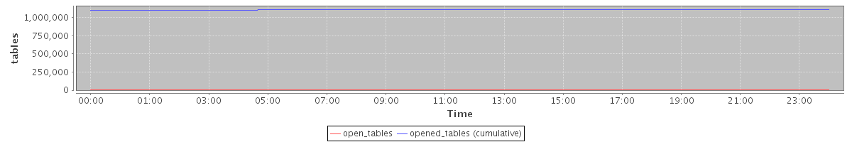 avg(open_tables) = 1156.95 avg(opened_tables (cumulative)) = 1105055.10