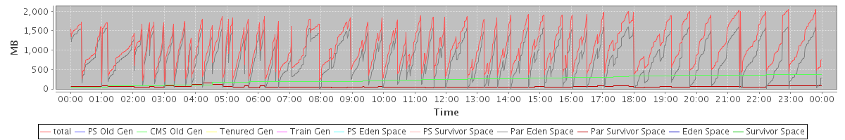 avg(total) = 1103.71 avg(PS Old Gen) = 0.00 avg(CMS Old Gen) = 235.17 avg(Tenured Gen) = 0.00 avg(Train Gen) = 0.00 avg(PS Eden Space) = 0.00 avg(PS Survivor Space) = 0.00 avg(Par Eden Space) = 811.25 avg(Par Survivor Space) = 57.29 avg(Eden Space) = 0.00 avg(Survivor Space) = 0.00