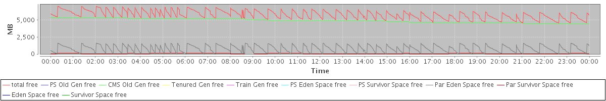 avg(total free) = 5795.13 avg(PS Old Gen free) = 0.00 avg(CMS Old Gen free) = 4925.48 avg(Tenured Gen free) = 0.00 avg(Train Gen free) = 0.00 avg(PS Eden Space free) = 0.00 avg(PS Survivor Space free) = 0.00 avg(Par Eden Space free) = 800.01 avg(Par Survivor Space free) = 69.64 avg(Eden Space free) = 0.00 avg(Survivor Space free) = 0.00