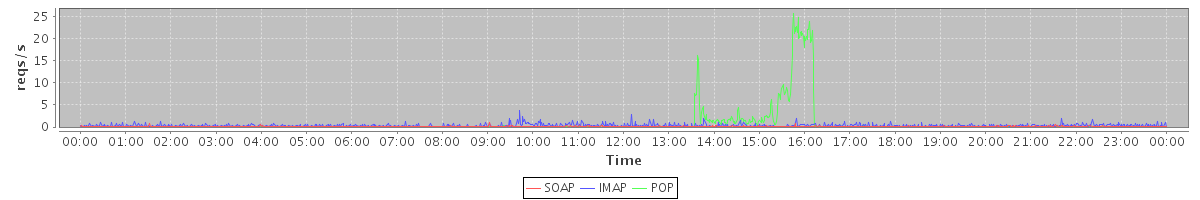 Host zm07.stanford.edu: Mailboxd: Request Rate by Client Protocol