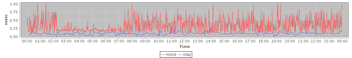 avg(mysql) = 0.33 avg(ldap) = 0.01