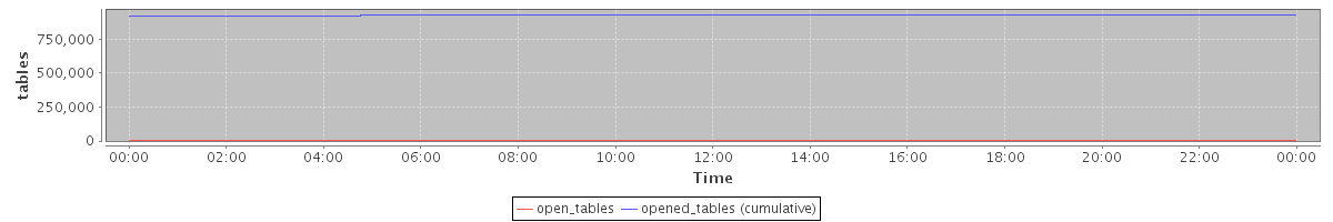 avg(open_tables) = 1174.27 avg(opened_tables (cumulative)) = 925510.63