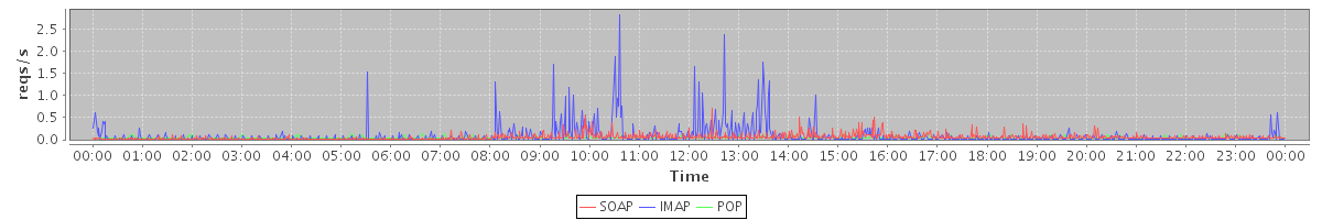 avg(IMAP) = 0.24 avg(IMAP SSL) = 1.90 avg(POP) = 0.00 avg(POP SSL) = 0.00 avg(SOAP sessions) = 2.73