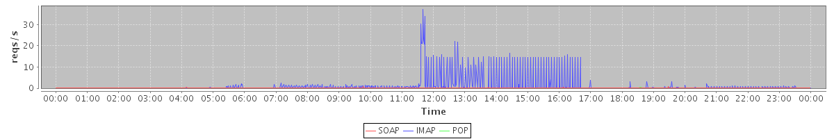 Host zm04.stanford.edu: Mailboxd: Request Rate by Client Protocol