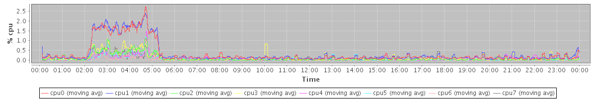 avg(cpu0) = 0.03 avg(cpu1) = 0.04 avg(cpu2) = 0.00 avg(cpu3) = 0.00 avg(cpu4) = 0.00 avg(cpu5) = 0.00 avg(cpu6) = 0.00 avg(cpu7) = 0.00
