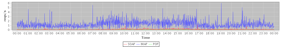 Host zm09.stanford.edu: Mailboxd: Request Rate by Client Protocol