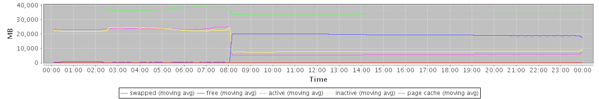 avg(swapped) = 43.79 avg(free) = 13105.41 avg(active) = 35334.70 avg(inactive) = 12917.77 avg(page cache) = 11697.24