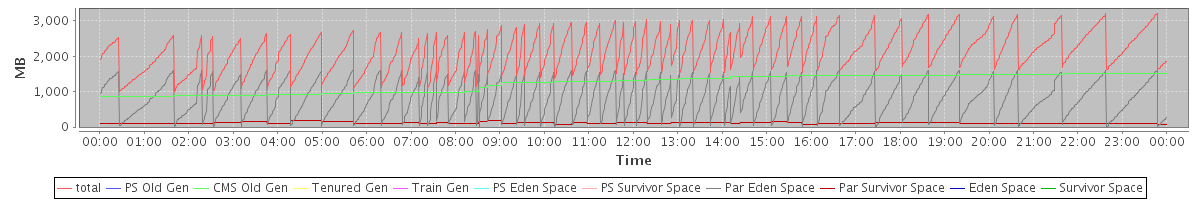 avg(total) = 2146.65 avg(PS Old Gen) = 0.00 avg(CMS Old Gen) = 1236.81 avg(Tenured Gen) = 0.00 avg(Train Gen) = 0.00 avg(PS Eden Space) = 0.00 avg(PS Survivor Space) = 0.00 avg(Par Eden Space) = 795.10 avg(Par Survivor Space) = 114.74 avg(Eden Space) = 0.00 avg(Survivor Space) = 0.00