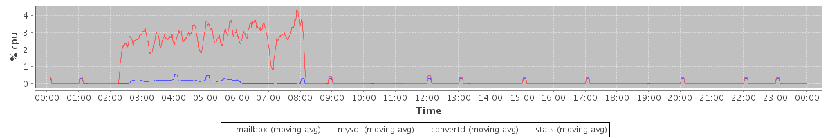 avg(mailbox) = 0.70 avg(mysql) = 0.05 avg(convertd) = 0.00 avg(stats) = 0.00