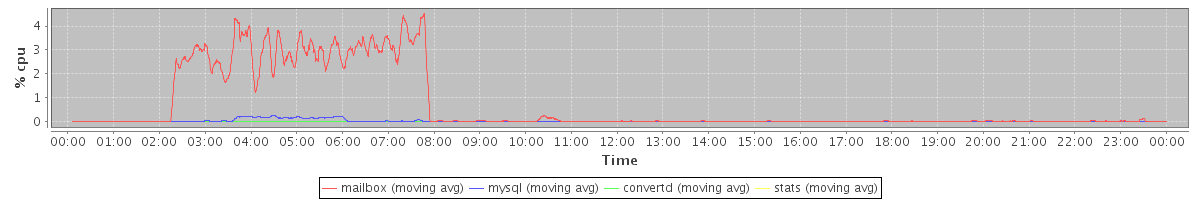 avg(mailbox) = 0.71 avg(mysql) = 0.02 avg(convertd) = 0.00 avg(stats) = 0.00