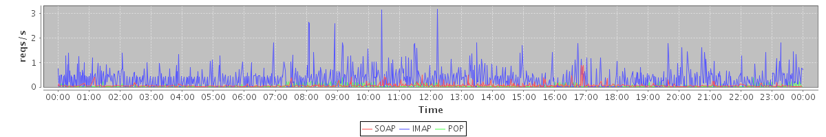 Host zm07.stanford.edu: Mailboxd: Request Rate by Client Protocol