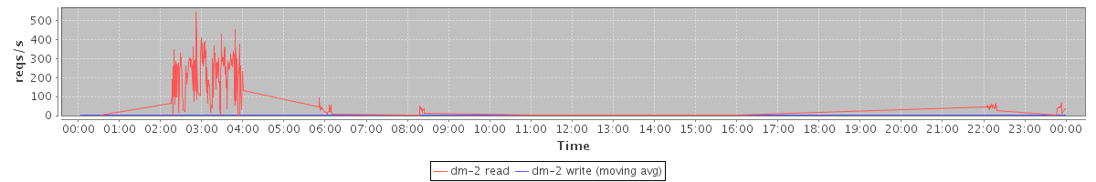 avg(dm-2 read) = 15.73 avg(dm-2 write) = 0.01