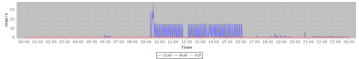 Host zm04.stanford.edu: Mailboxd: Request Rate by Client Protocol
