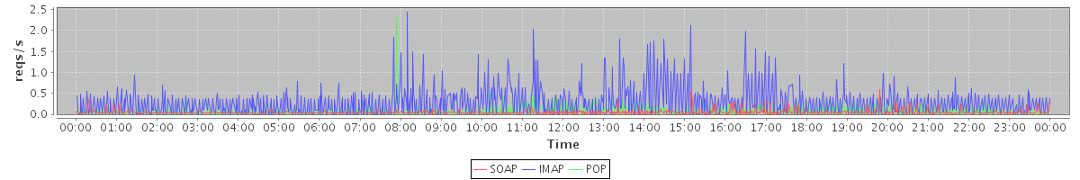 Host zm05.stanford.edu: Mailboxd: Request Rate by Client Protocol