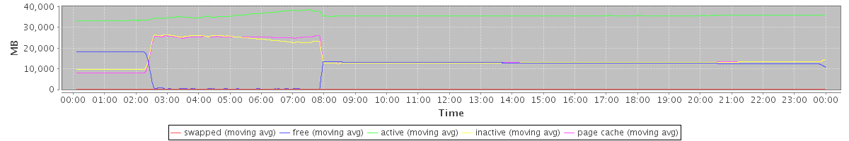 avg(swapped) = 43.79 avg(free) = 10497.90 avg(active) = 35493.05 avg(inactive) = 15369.66 avg(page cache) = 15415.10