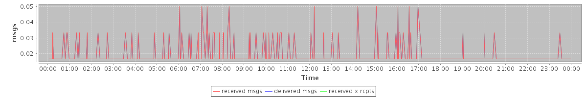 avg(received msgs) = 0.01 avg(delivered msgs) = 0.01 avg(received x rcpts) = 0.01
