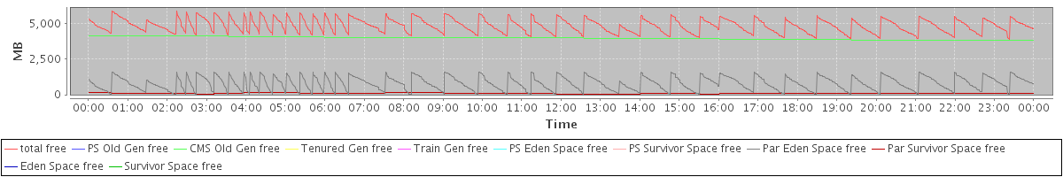 avg(total free) = 4831.37 avg(PS Old Gen free) = 0.00 avg(CMS Old Gen free) = 3952.58 avg(Tenured Gen free) = 0.00 avg(Train Gen free) = 0.00 avg(PS Eden Space free) = 0.00 avg(PS Survivor Space free) = 0.00 avg(Par Eden Space free) = 789.01 avg(Par Survivor Space free) = 89.78 avg(Eden Space free) = 0.00 avg(Survivor Space free) = 0.00