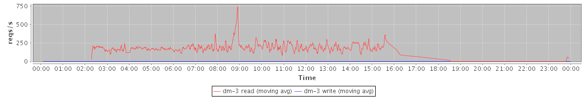 avg(dm-3 read) = 99.44 avg(dm-3 write) = 0.42