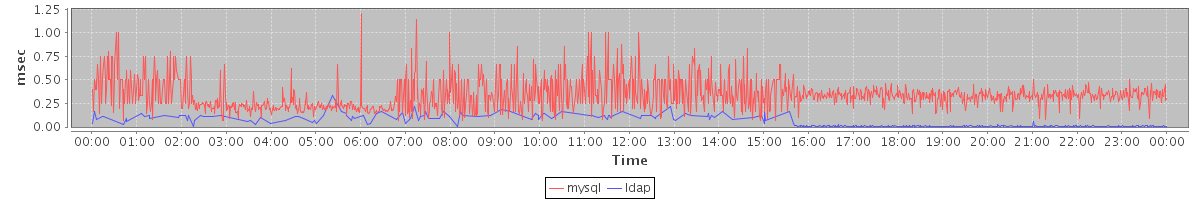 avg(mysql) = 0.33 avg(ldap) = 0.01