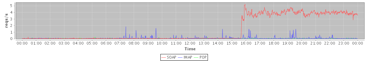 avg(IMAP) = 0.68 avg(IMAP SSL) = 1.56 avg(POP) = 0.00 avg(POP SSL) = 0.00 avg(SOAP sessions) = 0.42