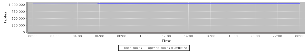 avg(open_tables) = 1155.35 avg(opened_tables (cumulative)) = 1042042.46