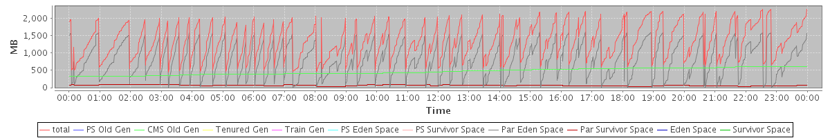 avg(total) = 1339.31 avg(PS Old Gen) = 0.00 avg(CMS Old Gen) = 467.20 avg(Tenured Gen) = 0.00 avg(Train Gen) = 0.00 avg(PS Eden Space) = 0.00 avg(PS Survivor Space) = 0.00 avg(Par Eden Space) = 807.00 avg(Par Survivor Space) = 65.11 avg(Eden Space) = 0.00 avg(Survivor Space) = 0.00
