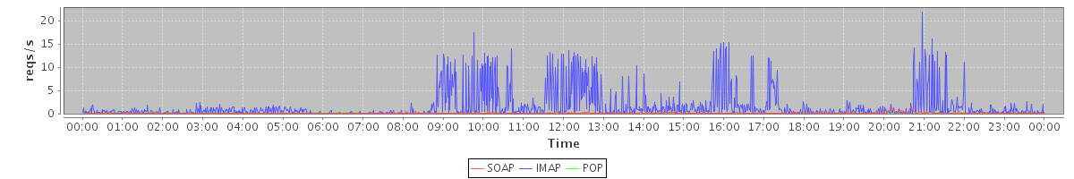 Host zm02.stanford.edu: Mailboxd: Request Rate by Client Protocol