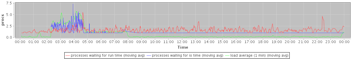 avg(processes waiting for run time) = 0.78 avg(processes waiting for io time) = 0.36 avg(load average (1 min)) = 0.67