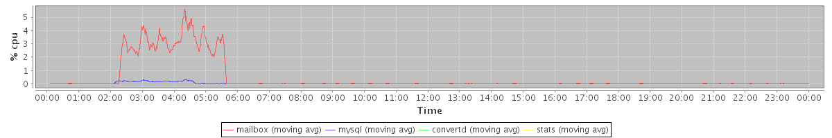 avg(mailbox) = 0.46 avg(mysql) = 0.02 avg(convertd) = 0.00 avg(stats) = 0.00