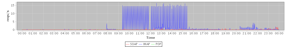 Host zm04.stanford.edu: Mailboxd: Request Rate by Client Protocol