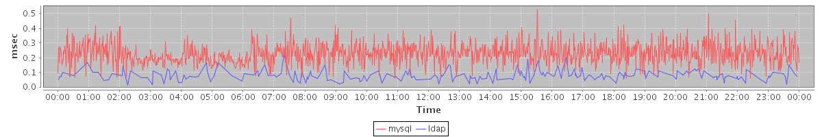 avg(mysql) = 0.23 avg(ldap) = 0.01
