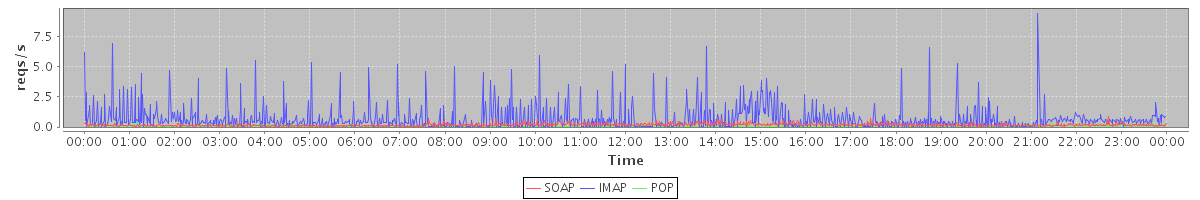 Host zm06.stanford.edu: Mailboxd: Request Rate by Client Protocol