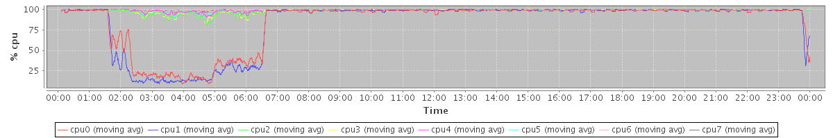 avg(cpu0) = 5.87 avg(cpu1) = 5.89 avg(cpu2) = 0.83 avg(cpu3) = 0.65 avg(cpu4) = 0.47 avg(cpu5) = 0.39 avg(cpu6) = 0.19 avg(cpu7) = 0.19