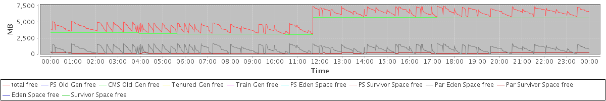 avg(total free) = 5384.22 avg(PS Old Gen free) = 0.00 avg(CMS Old Gen free) = 4467.37 avg(Tenured Gen free) = 0.00 avg(Train Gen free) = 0.00 avg(PS Eden Space free) = 0.00 avg(PS Survivor Space free) = 0.00 avg(Par Eden Space free) = 786.11 avg(Par Survivor Space free) = 130.74 avg(Eden Space free) = 0.00 avg(Survivor Space free) = 0.00