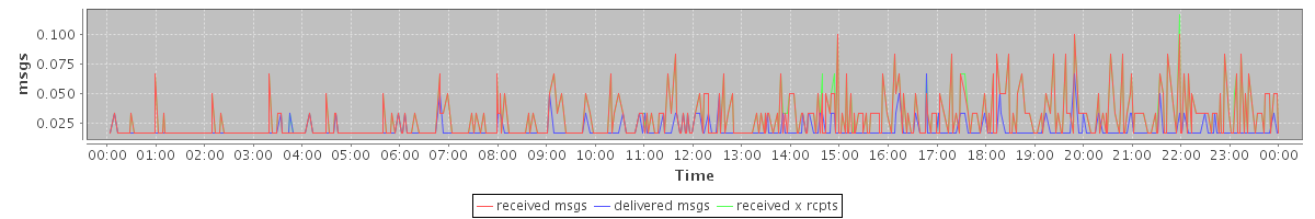 avg(received msgs) = 0.01 avg(delivered msgs) = 0.01 avg(received x rcpts) = 0.01
