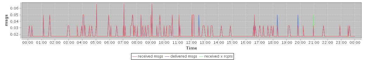 avg(received msgs) = 0.01 avg(delivered msgs) = 0.01 avg(received x rcpts) = 0.01