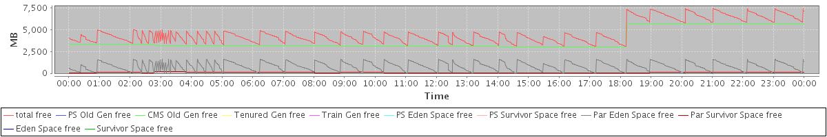 avg(total free) = 4661.25 avg(PS Old Gen free) = 0.00 avg(CMS Old Gen free) = 3763.74 avg(Tenured Gen free) = 0.00 avg(Train Gen free) = 0.00 avg(PS Eden Space free) = 0.00 avg(PS Survivor Space free) = 0.00 avg(Par Eden Space free) = 804.43 avg(Par Survivor Space free) = 93.07 avg(Eden Space free) = 0.00 avg(Survivor Space free) = 0.00