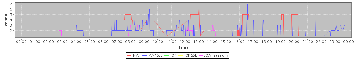 avg(IMAP) = 1.06 avg(IMAP SSL) = 1.48 avg(POP) = 0.00 avg(POP SSL) = 0.00 avg(SOAP sessions) = 0.78