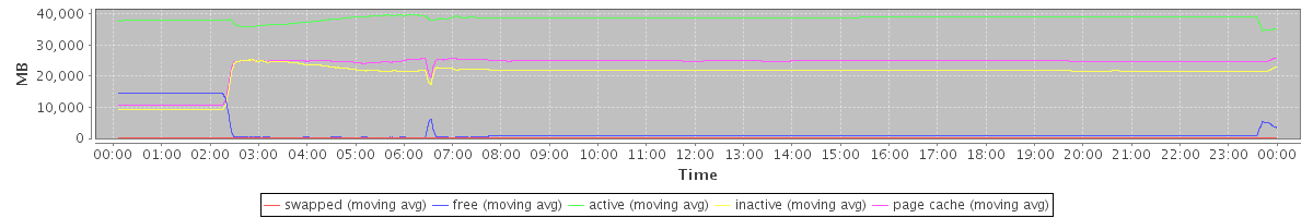avg(swapped) = 28.14 avg(free) = 2179.36 avg(active) = 38489.11 avg(inactive) = 20755.09 avg(page cache) = 23438.09