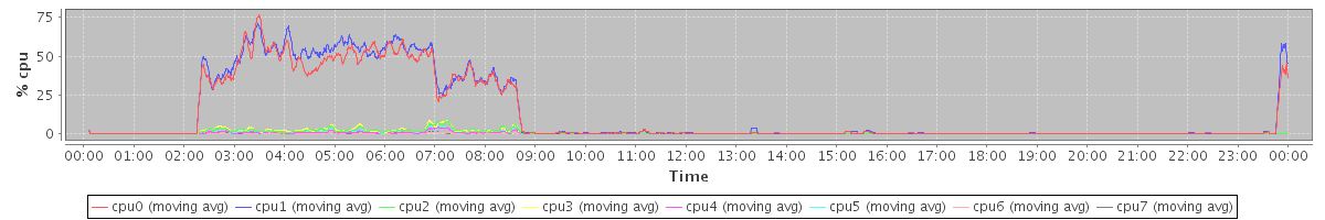avg(cpu0) = 0.56 avg(cpu1) = 0.56 avg(cpu2) = 0.23 avg(cpu3) = 0.22 avg(cpu4) = 0.15 avg(cpu5) = 0.19 avg(cpu6) = 0.10 avg(cpu7) = 0.09