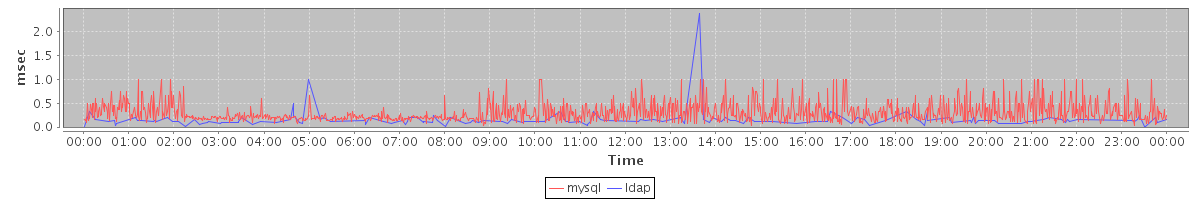 avg(mysql) = 0.28 avg(ldap) = 0.02