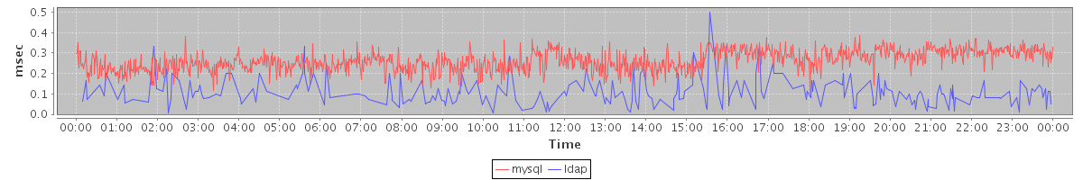 avg(mysql) = 0.26 avg(ldap) = 0.02