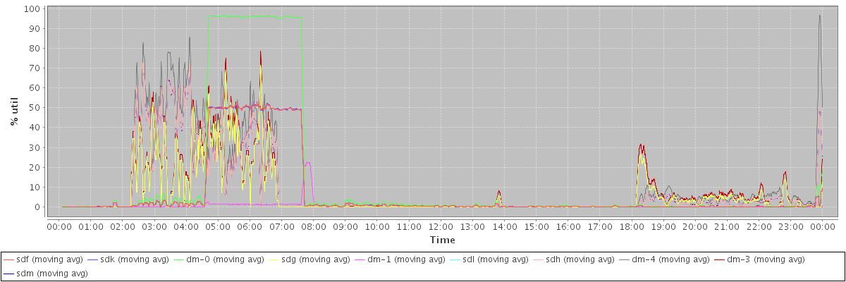 avg(sdf) = 6.73 avg(sdk) = 6.73 avg(dm-0) = 12.90 avg(sdg) = 6.37 avg(dm-1) = 0.46 avg(sdl) = 6.37 avg(sdh) = 8.03 avg(dm-4) = 10.18 avg(dm-3) = 7.20 avg(sdm) = 8.02