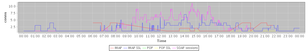 avg(IMAP) = 0.68 avg(IMAP SSL) = 1.97 avg(POP) = 0.00 avg(POP SSL) = 0.01 avg(SOAP sessions) = 2.60