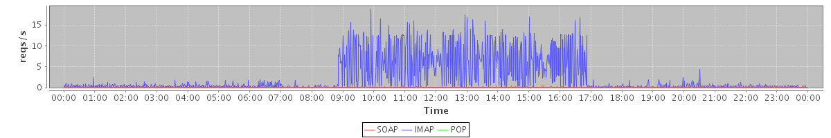 Host zm02.stanford.edu: Mailboxd: Request Rate by Client Protocol