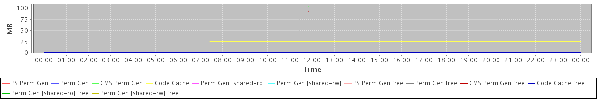 avg(PS Perm Gen) = 0.00 avg(Perm Gen) = 0.00 avg(CMS Perm Gen) = 103.42 avg(Code Cache) = 25.79 avg(Perm Gen [shared-ro]) = 0.00 avg(Perm Gen [shared-rw]) = 0.00 avg(PS Perm Gen free) = 0.00 avg(Perm Gen free) = 0.00 avg(CMS Perm Gen free) = 92.58 avg(Code Cache free) = 0.31 avg(Perm Gen [shared-ro] free) = 0.00 avg(Perm Gen [shared-rw] free) = 0.00