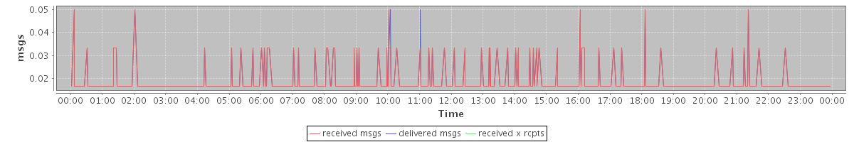 avg(received msgs) = 0.01 avg(delivered msgs) = 0.01 avg(received x rcpts) = 0.01
