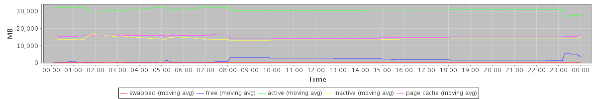 avg(swapped) = 62.11 avg(free) = 1659.04 avg(active) = 30723.34 avg(inactive) = 13914.59 avg(page cache) = 15060.41