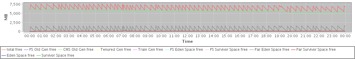 avg(total free) = 6575.07 avg(PS Old Gen free) = 0.00 avg(CMS Old Gen free) = 5656.08 avg(Tenured Gen free) = 0.00 avg(Train Gen free) = 0.00 avg(PS Eden Space free) = 0.00 avg(PS Survivor Space free) = 0.00 avg(Par Eden Space free) = 798.57 avg(Par Survivor Space free) = 120.42 avg(Eden Space free) = 0.00 avg(Survivor Space free) = 0.00