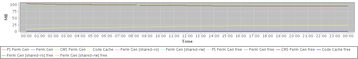 avg(PS Perm Gen) = 0.00 avg(Perm Gen) = 0.00 avg(CMS Perm Gen) = 99.19 avg(Code Cache) = 18.32 avg(Perm Gen [shared-ro]) = 0.00 avg(Perm Gen [shared-rw]) = 0.00 avg(PS Perm Gen free) = 0.00 avg(Perm Gen free) = 0.00 avg(CMS Perm Gen free) = 96.81 avg(Code Cache free) = 0.22 avg(Perm Gen [shared-ro] free) = 0.00 avg(Perm Gen [shared-rw] free) = 0.00